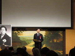 また、今年、来年と還暦を迎えられる14回生(s51年3月卒業)15回生(s52年3月卒業)の方々にお祝いの記念品が贈られ、親子共に同窓生という2組の親子参加者には、縫い物会作成のあみぐるみが贈られました。