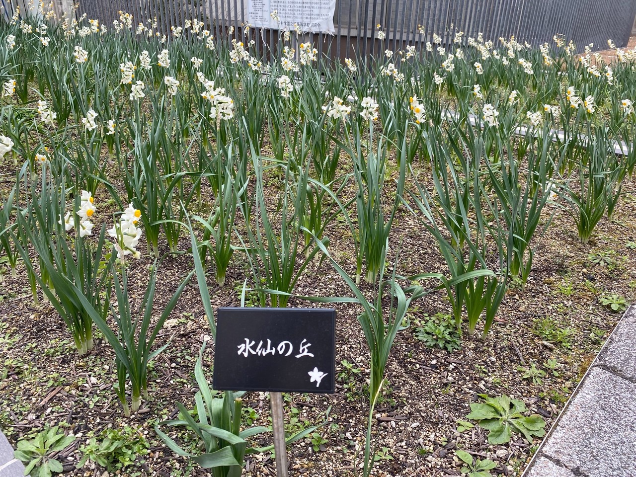 昨年植えた日本水仙の球根が子球を増やし、順調に育っています。