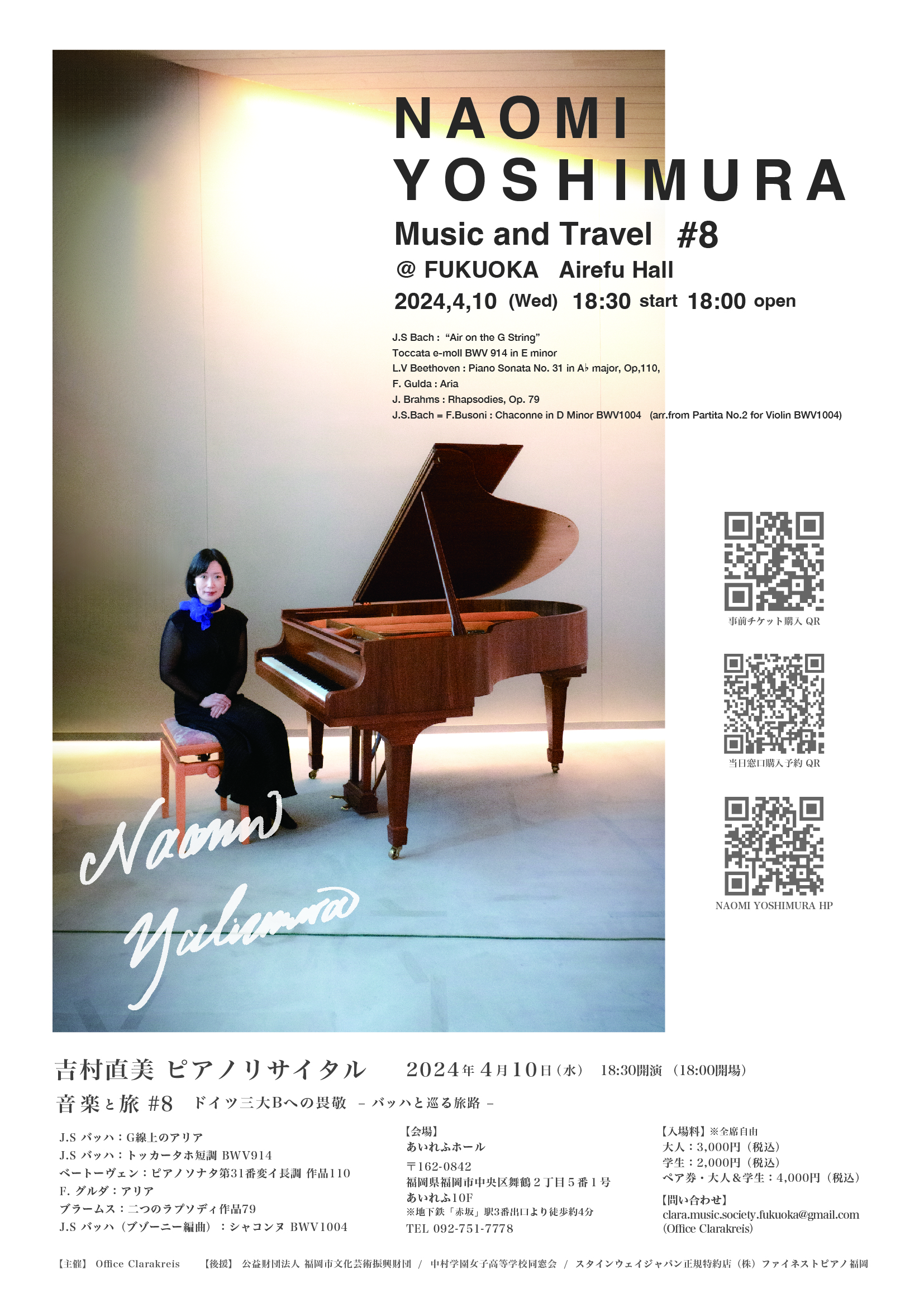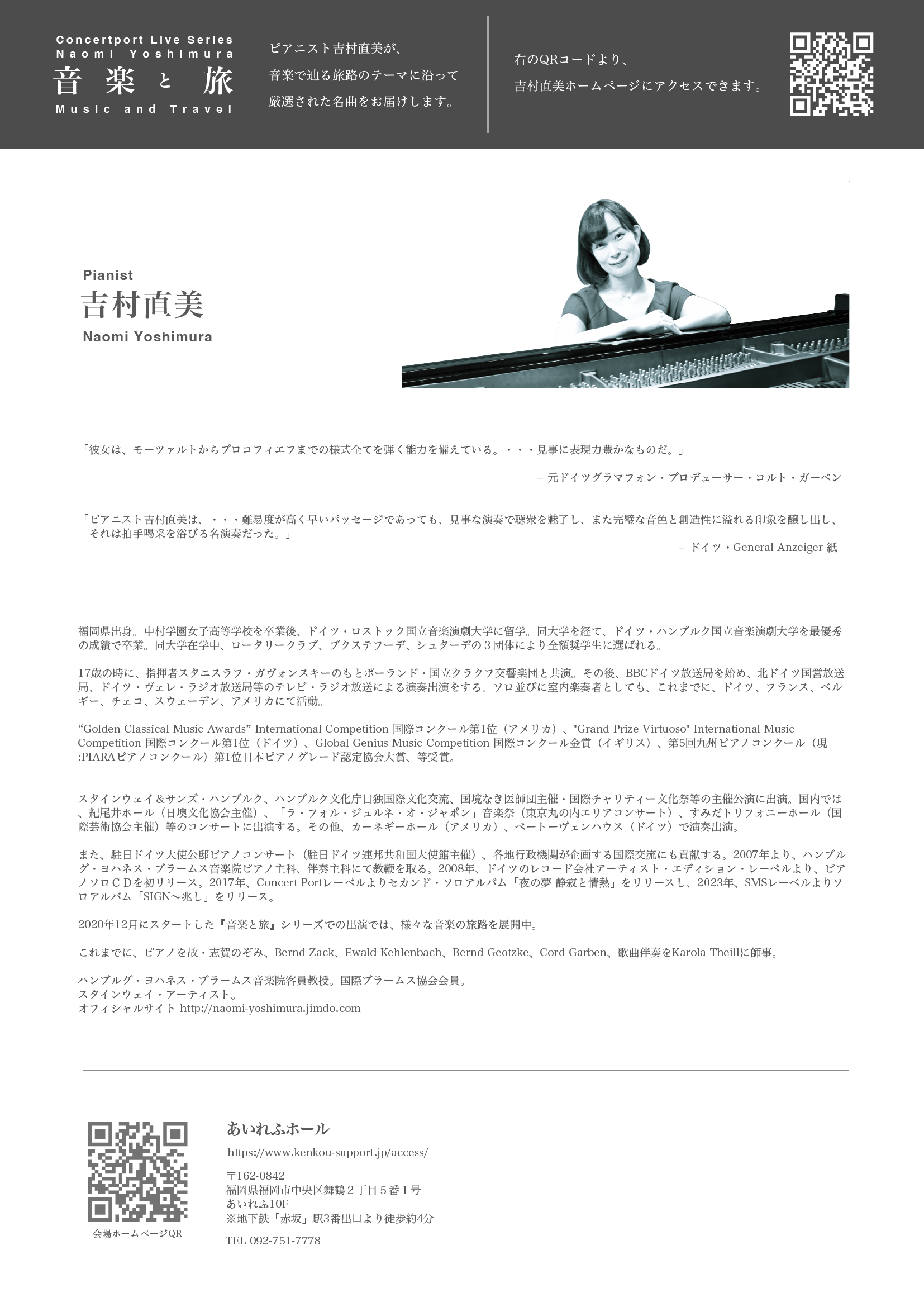 本校卒業生(35回生)の吉村直美さんのピアノリサイタルが開催されます。